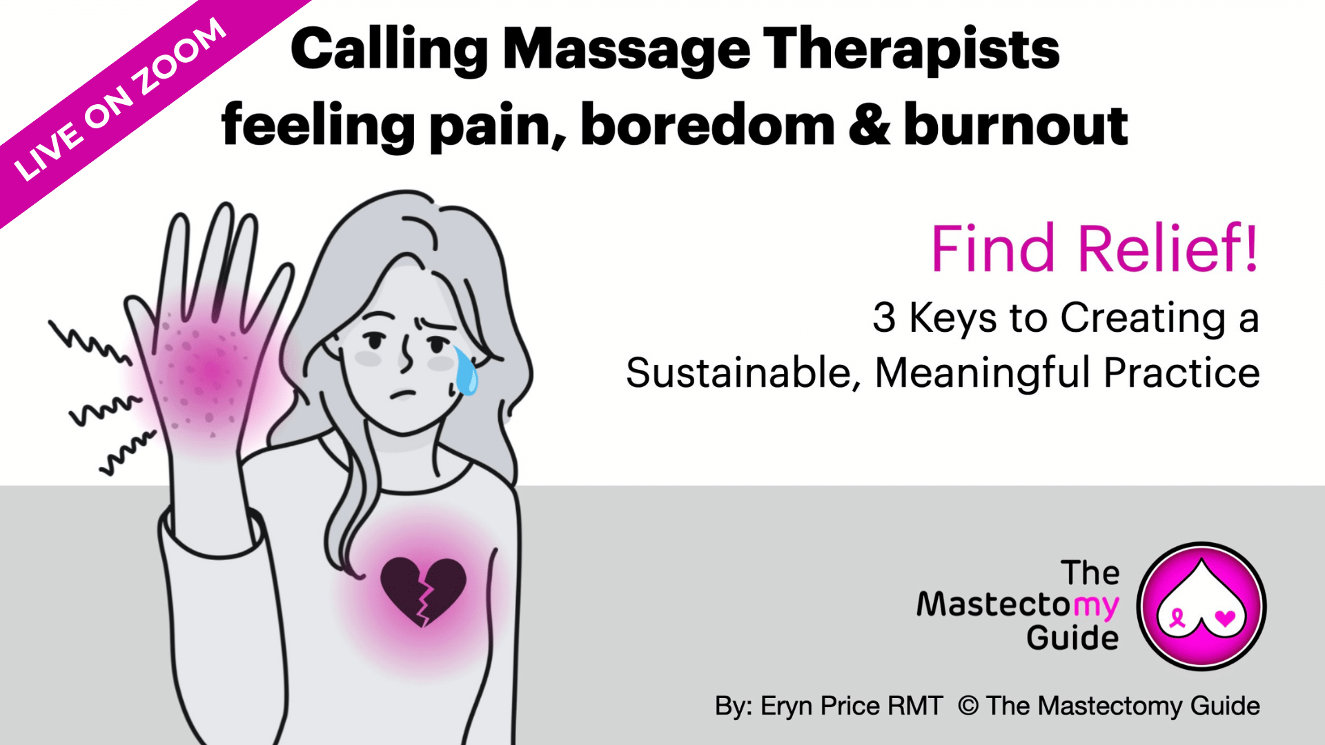 Together, we’ll explore how to build a sustainable massage practice that supports your body and your purpose. Click the button below to join us live on Zoom.