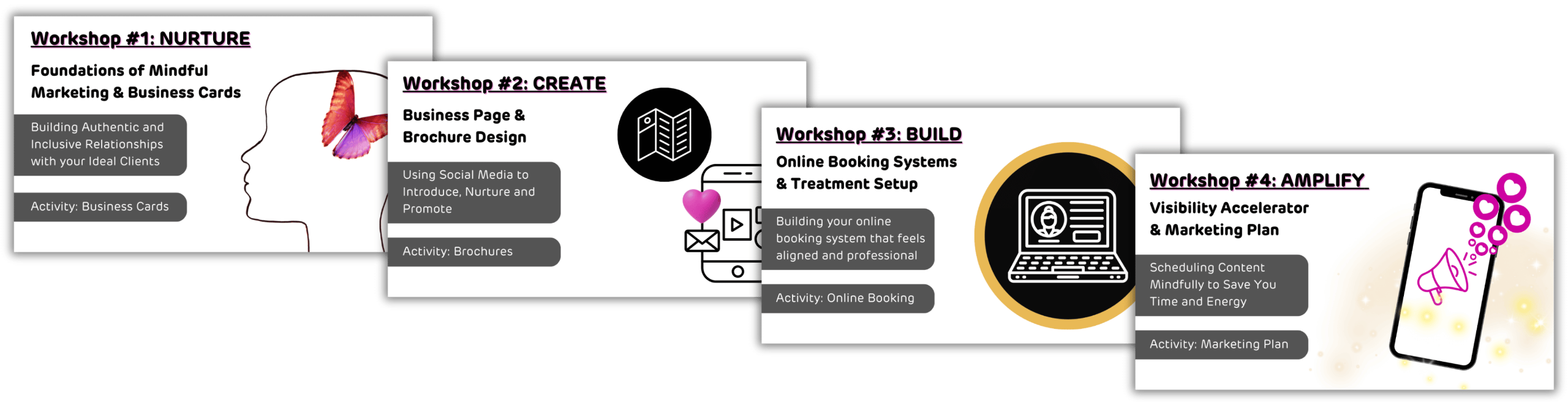 Mindful, Relationship-Based Marketing – Learn how to build authentic, inclusive connections and establish trust in ways that feel safe and aligned, both online and in person. This approach supports long-term client relationships and sustainable, values-led practice growth.